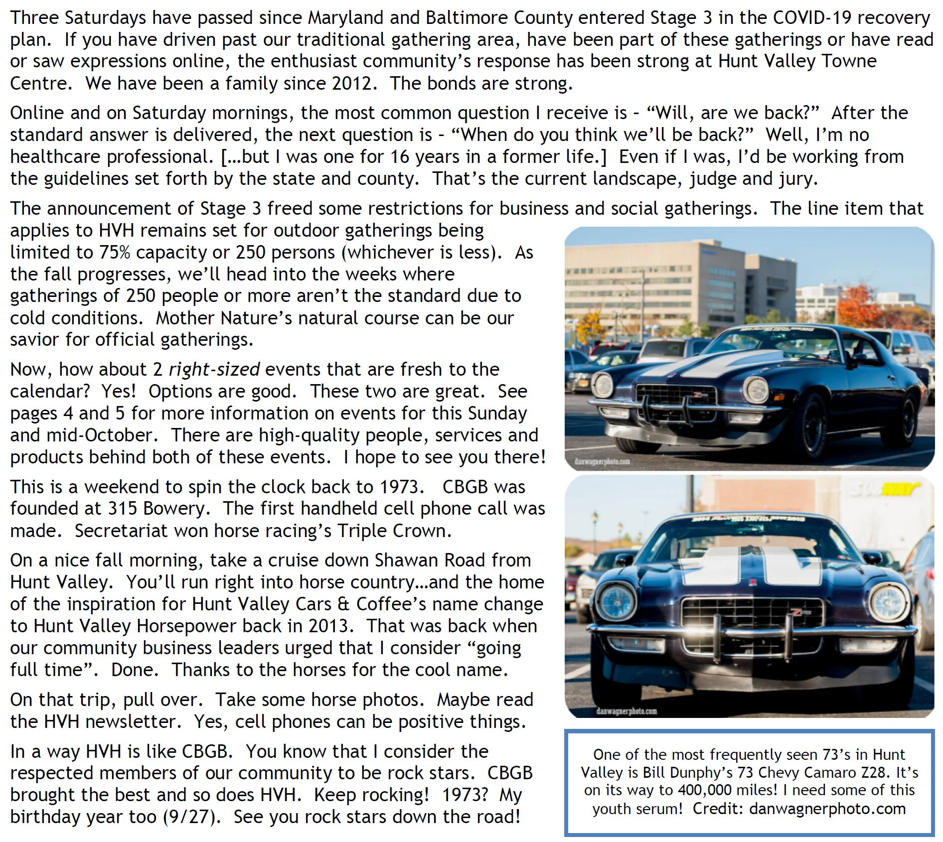 Richard WilliamsHunt Valley Horsepower, Detail Garage Baltimore East, Detail Garage - Baltimore East, A-Plus Auto Styling, A Plus Auto Styling, Secretariat, CBGB, 1973, September 27, September 27 1973, 73 Camaro