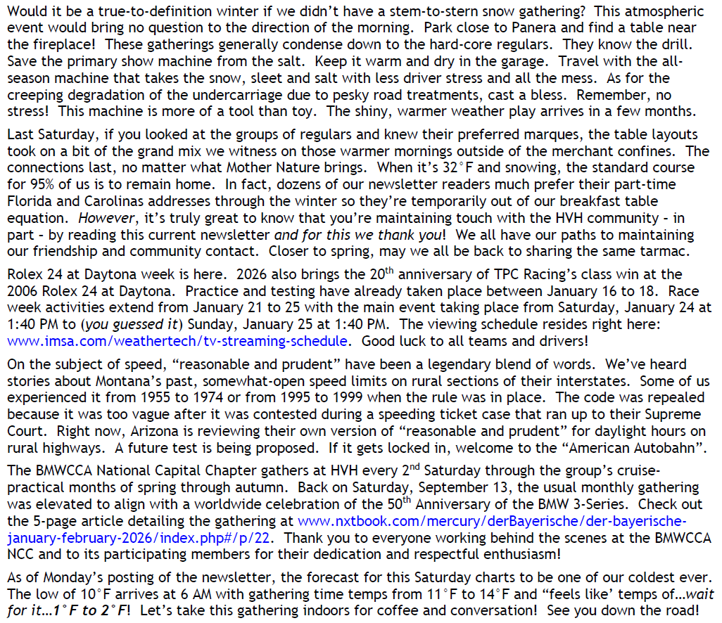 Tool vs Toy Day, Table vs Tarmac Layout, All-Hours Snow, Hello Florida, Rolex 24 Week, Reasonable & Prudent, BMW 3-Series 50th, Cold Future