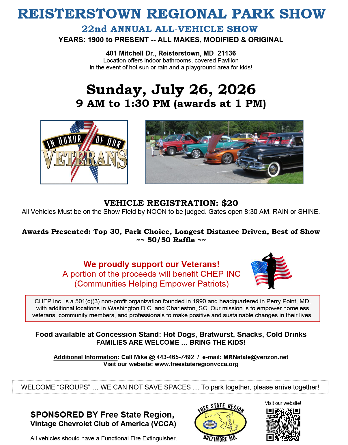 Reisterstown Regional Park Show Sunday, July 26, 2026 9:00 AM 1:30 PM 09:00 13:30 401 Mitchell Drive Reisterstown, MD, 21136 United States (map) Google Calendar ICS